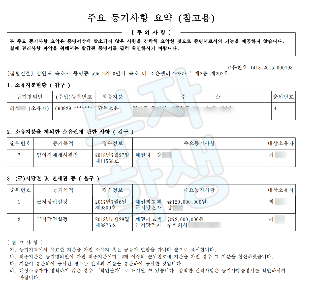 그런데 이 내용들은 사실 등기부 등본에 기재되어 있는 내용을 정리해놓은 것일 뿐입니다.