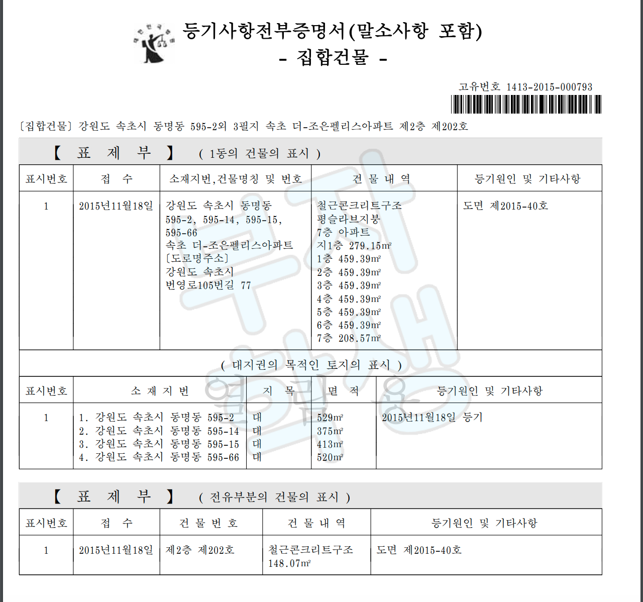 이 페이지에는 말소된 권리들은 모두 배제하고, 현재 유효한 권리들에 대해서만 표시되어 있습니다.